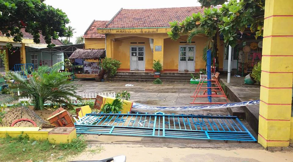 Bão làm hư hỏng nặng trường mầm non ở thị xã Sông Cầu. Ảnh: NGUYỄN HỮU KHOA