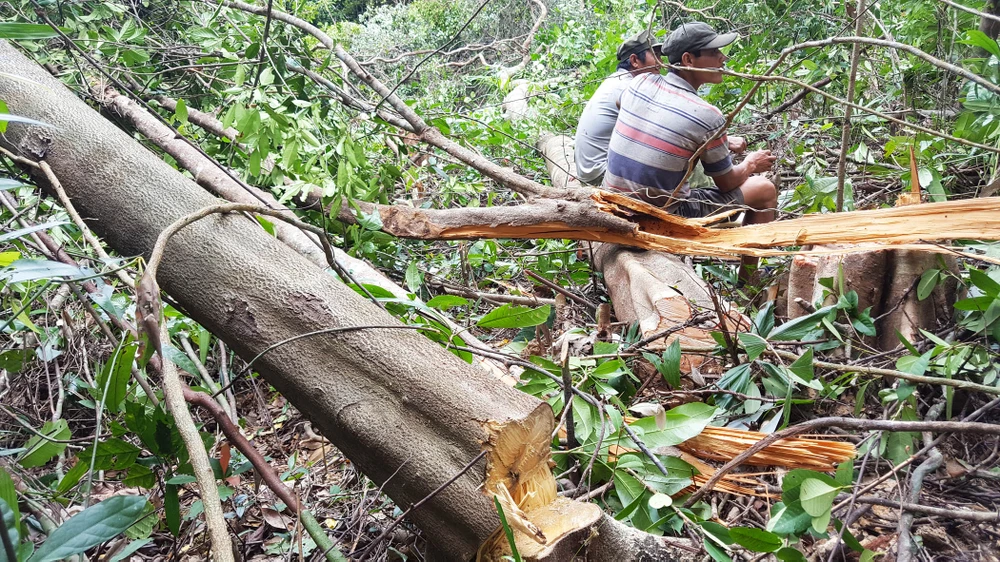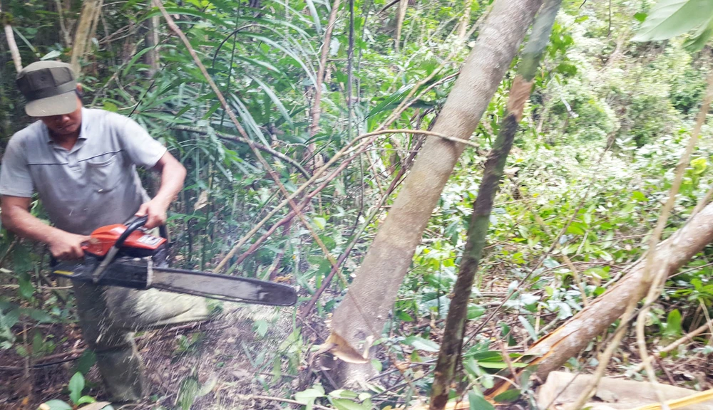 Gỗ rừng bị công khai triệt hạ. Ảnh: TẤN LỘC