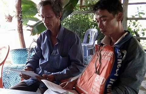 Hai nông dân Nguyễn Thành Nam (trái) và Nguyễn Thanh Tuấn đang khiếu nại quyết định đình chỉ kiểu né bồi thường oan. Ảnh: PHƯƠNG NAM