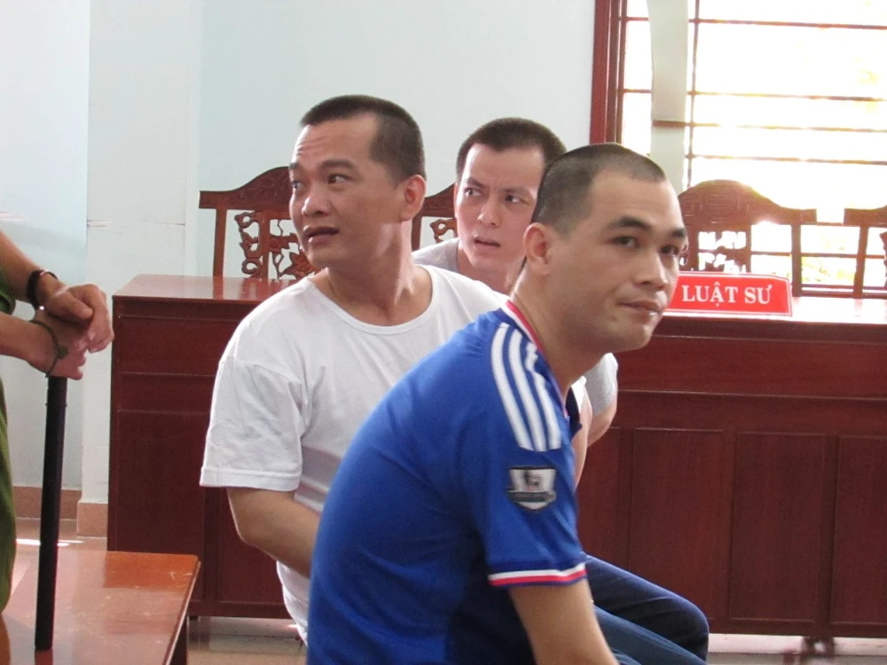 Các bị cáo tại tòa ngày 24-8, trong đó, bị cáo Nguyễn Minh Thiện (áo xanh) trước đó có kháng cáo nhưng đã rút trước khi mở phiên tòa. Ảnh: NN