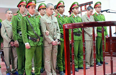 Các bị cáo trước vành móng ngựa. Ảnh: N.DÂN