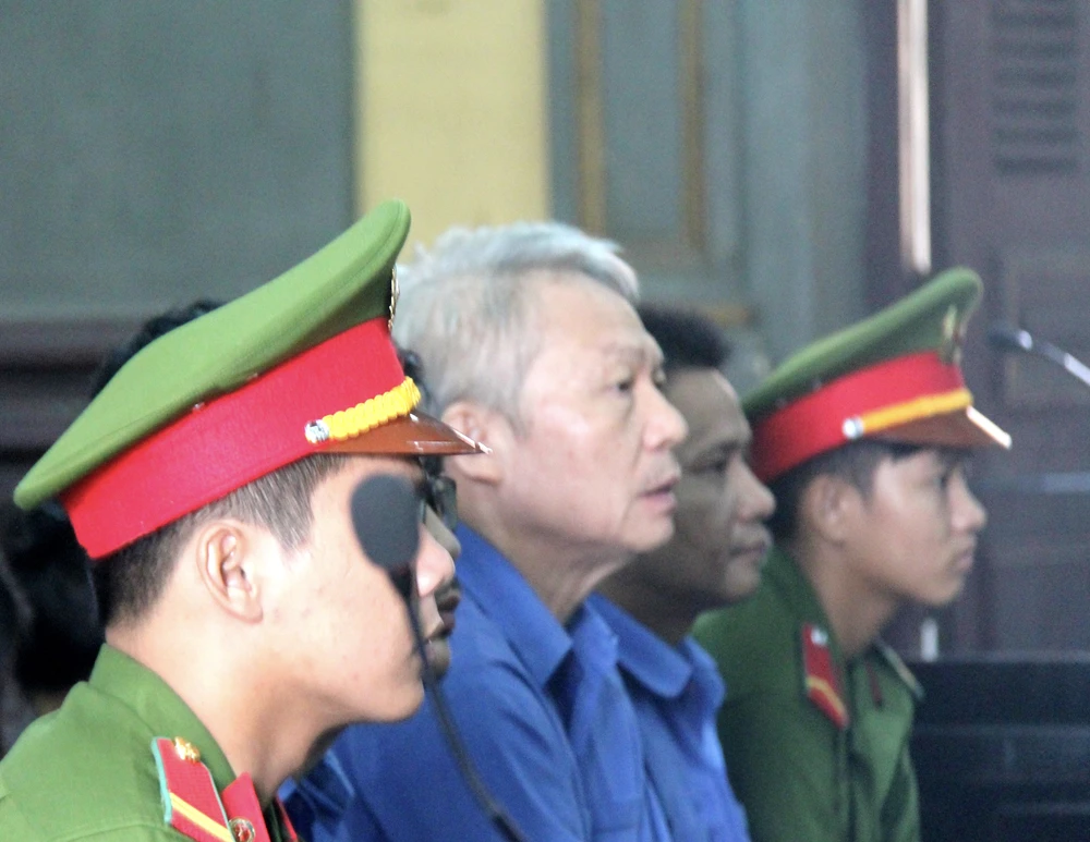 Nguyên giám đốc Phạm Văn Cử (đầu bạc) tại phiên tòa sáng nay.