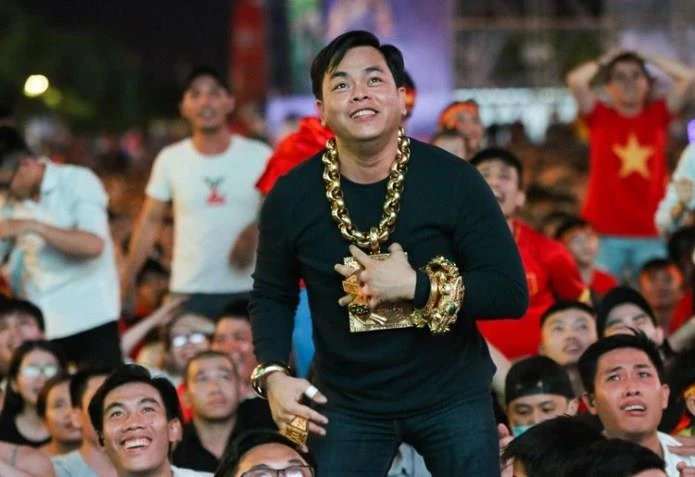 Phúc XO đeo vàng xem đá bóng tại phố đi bộ Nguyễn Huệ.