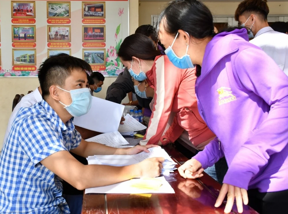 Người dân đến làm thủ tục nhận hồ sơ công bố bồi thường, hỗ trợ dự án sân bay Long Thành. Ảnh:KG