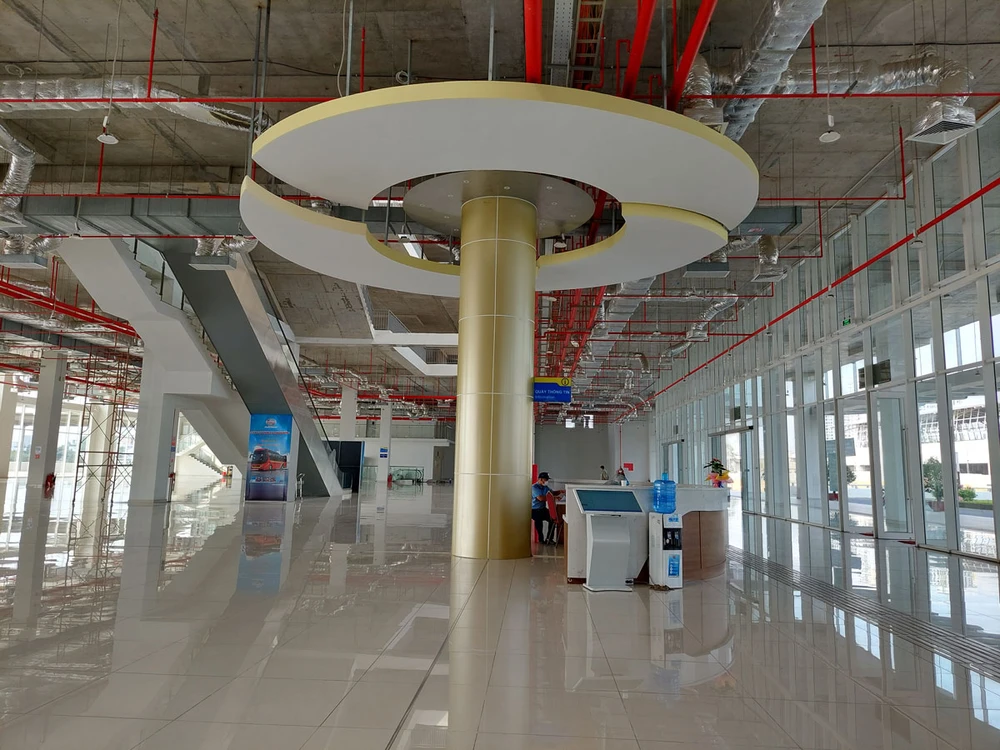 Khu vực sảnh chờ khá yên tĩnh, chỉ có bóng dáng của bảo vệ và một số nhân viên bến xe, không có một hành khách nào chờ xe. Tại quầy thông tin có nhân viên trực hỗ trợ thông tin nhưng cũng không có người ghé hỏi.