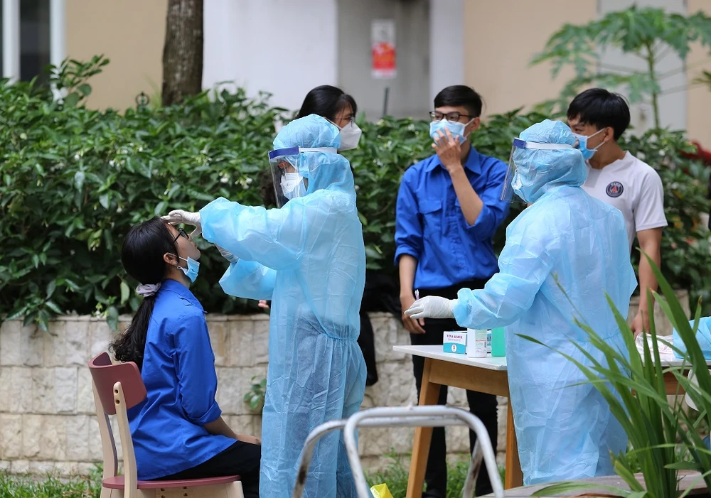 Xét nghiệm tại chung cư Sunview Town, TP Thủ Đức. Ảnh: HOÀNG GIANG