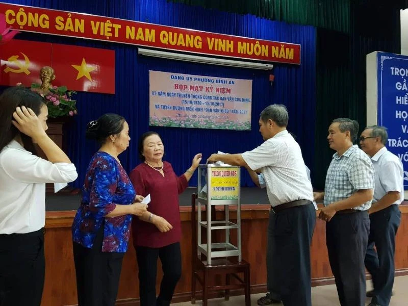 Tại buổi họp mặt, ông Trần Chí Nghĩa, Phó Bí thư Thường trực Đảng ủy phường Bình An, phát biểu khai mạc hội nghị và ôn lại truyền thống công tác dân vận.