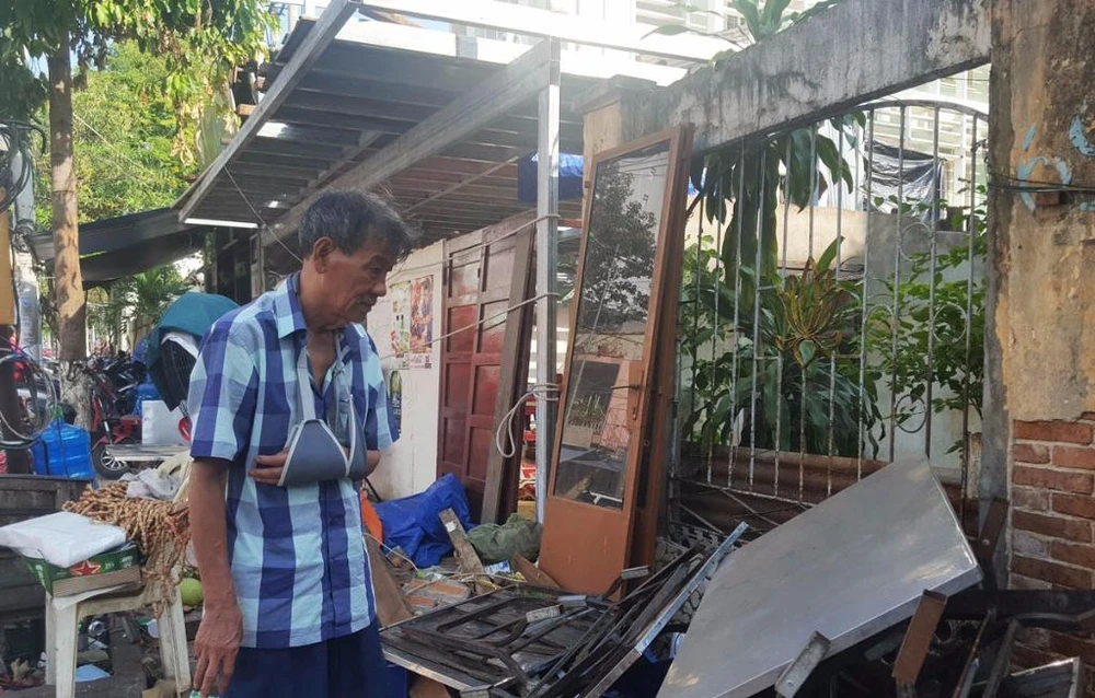 Như Pháp Luật TP.HCM đã phản ánh, cơn bão số 12 đã phá tan phần lớn mái của ngôi nhà, đánh vỡ các bức tường ván, đồ đạc nên gia đình ông Nguyễn Khoái với ba hộ, 16 người không còn nơi ở. Do không mua được vật liệu gỗ vì TP Nha Trang có quá nhiều nhà bị hư hỏng, nếu sử dụng lại gỗ cũ thì không an toàn nên gia đình ông mua sắt hộp làm trụ, khung để lợp lại mái tôn trong phần tường nhà còn lại làm nơi tạm trú.