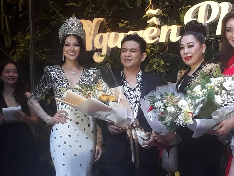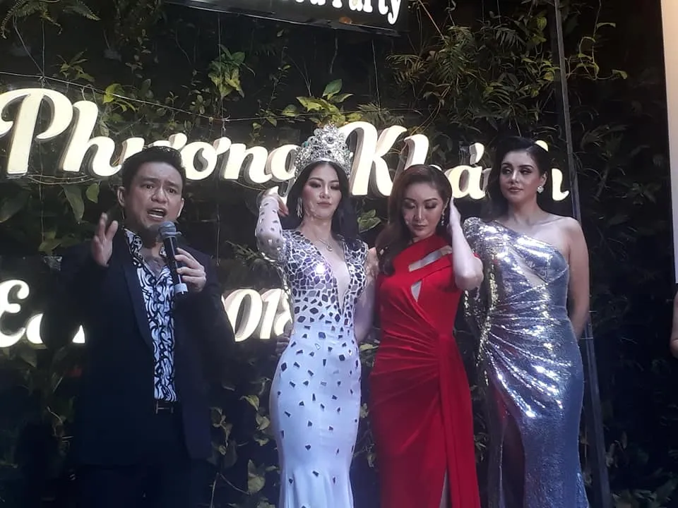 Tại buổi tiệc, BS Chiêm Quốc Thái chủ động bước lên sân khấu sau chia sẻ của Phương Khánh, chủ động kể về không khí ở đêm chung kết Hoa hậu Trái đất 2018 mà ông có mặt tại chỗ. Ông kể khán giả Trung Quốc và Philippines đã chuyển sang ủng hộ cho Việt Nam khi thí sinh nước họ dần bị loại.