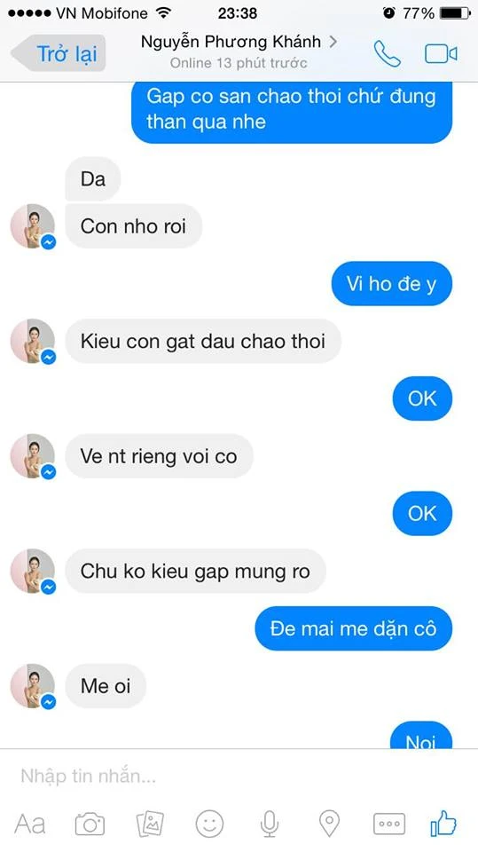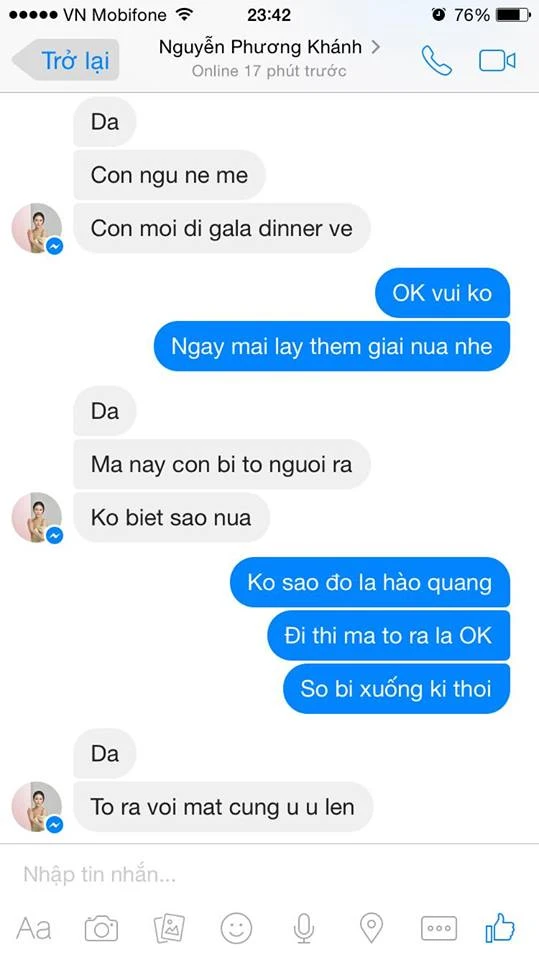Sau phần chia sẻ của những người trong êkíp Phương Khánh là lời mời vào tiệc, không có phần hỏi đáp của báo chí như chờ đợi. PV Pháp Luật TP.HCM đã gặp riêng anh trai, cũng là người quản lý của Phương Khánh, để có những câu hỏi xác minh, rằng những bằng chứng tố cáo Phương Khánh vô ơn và mua giải được tung ra có phải tin nhắn thật hay không?