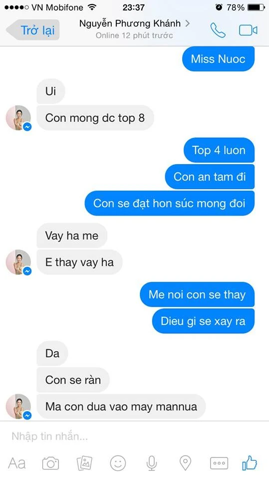 Rất nhiều tin nhắn cho bằng chứng ông Trần Kiệt là người theo suốt Phương Khánh, tính chuyện, chỉ bảo, sắp đặt việc để Phương Khánh làm theo. Phương Khánh có biết việc dàn xếp có giải suốt quá trình thi Miss Earth chứ không như lời Phương Khánh và ông Chiêm Quốc Thái nói Trần Kiệt chỉ là người giới thiệu Khánh với ông bầu Phúc Nguyễn mà thôi.