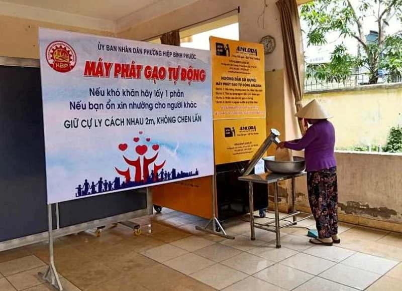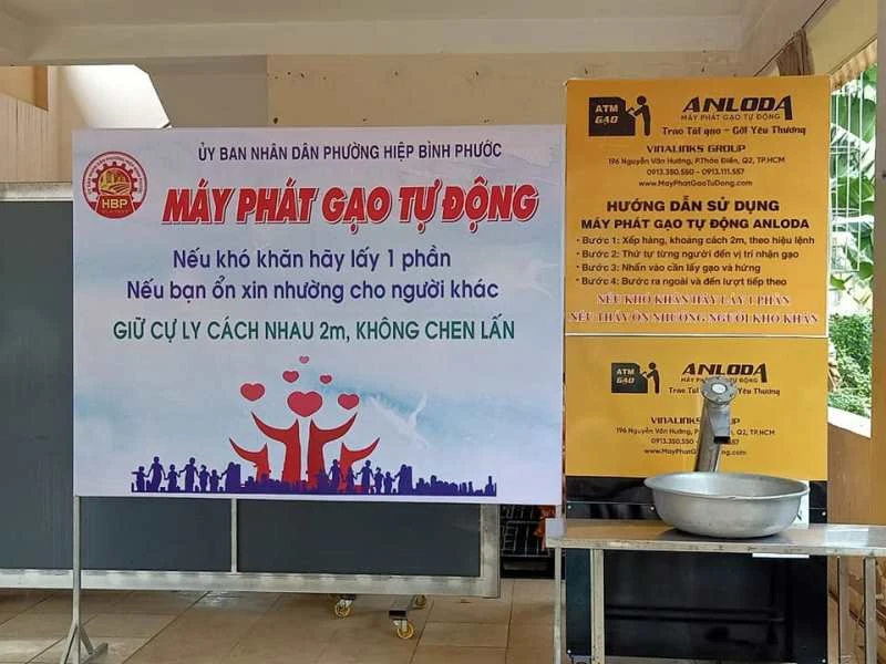 Máy được đặt tại Nhà Văn hóa - Thể thao phường (số 2, đường 17, khu phố 3, phường Hiệp Bình Phước, quận Thủ Đức). Thời gian phát gạo: Buổi sáng từ 8 giờ đến 10 giờ, buổi chiều từ 15 giờ đến 17 giờ. Mỗi người sẽ được nhận một phần gạo 2 kg.