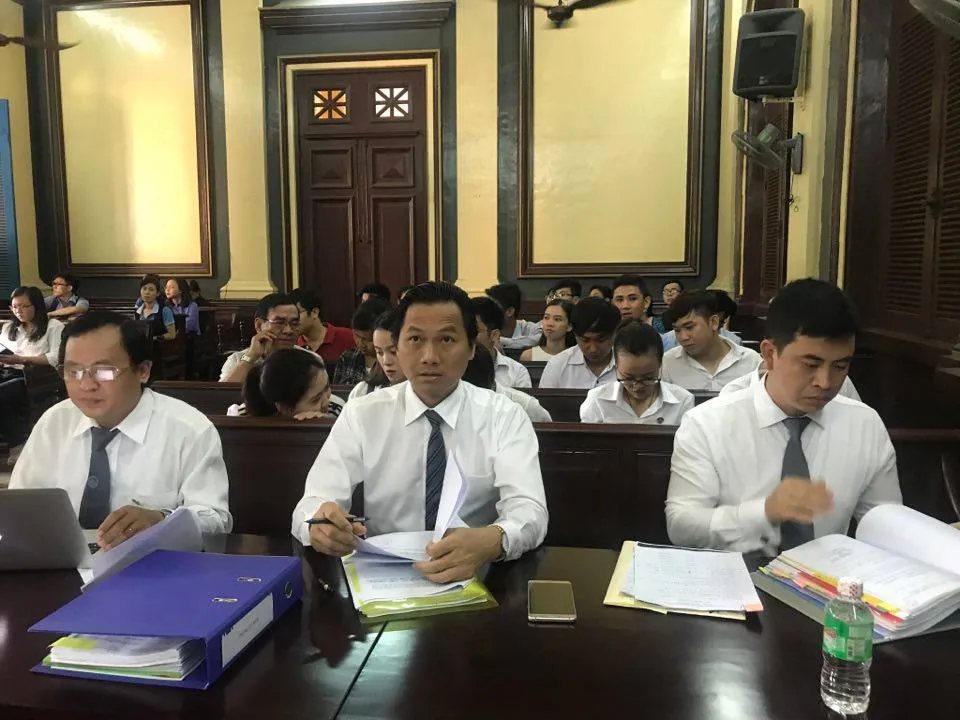 Bị hại Cao Toàn Mỹ đang trao đổi với các luật sư của mình trước phiên xử