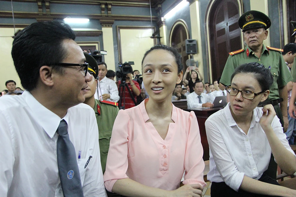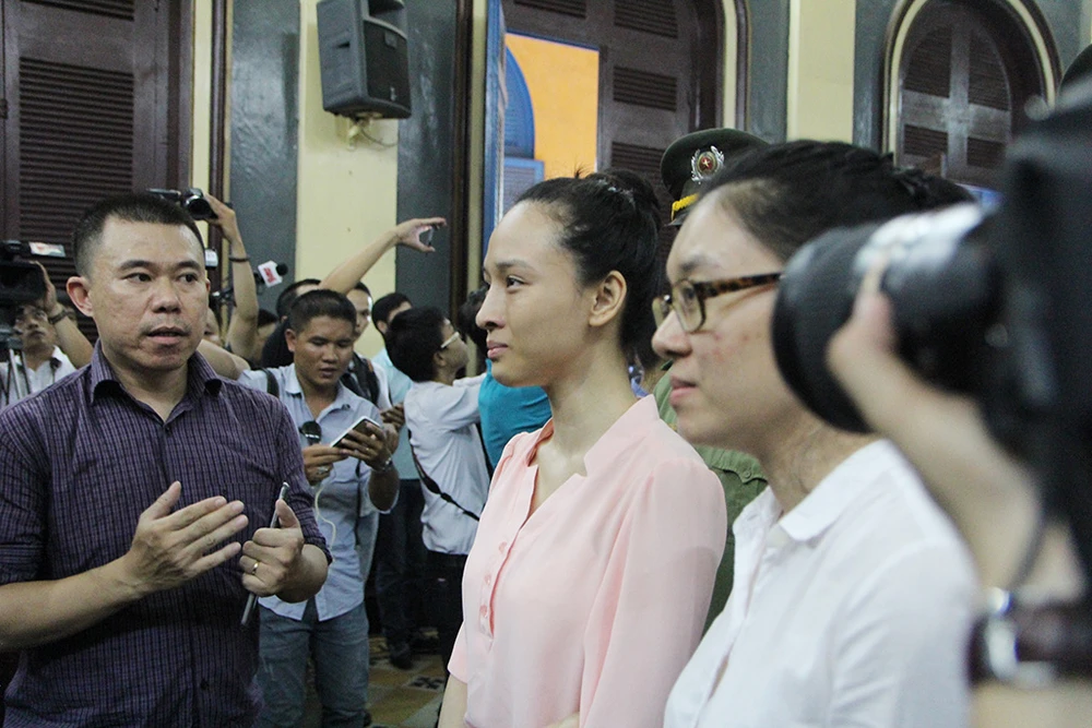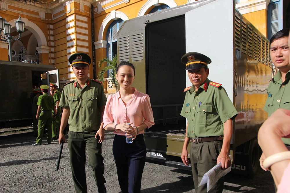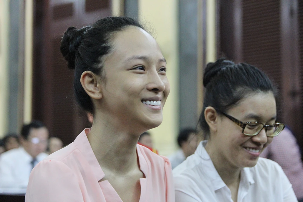 Gương mặt hoa hậu luôn bình thản, tự tin trước tòa.