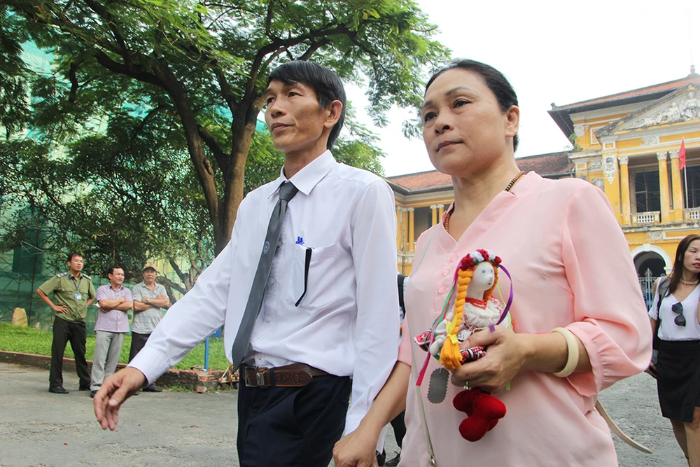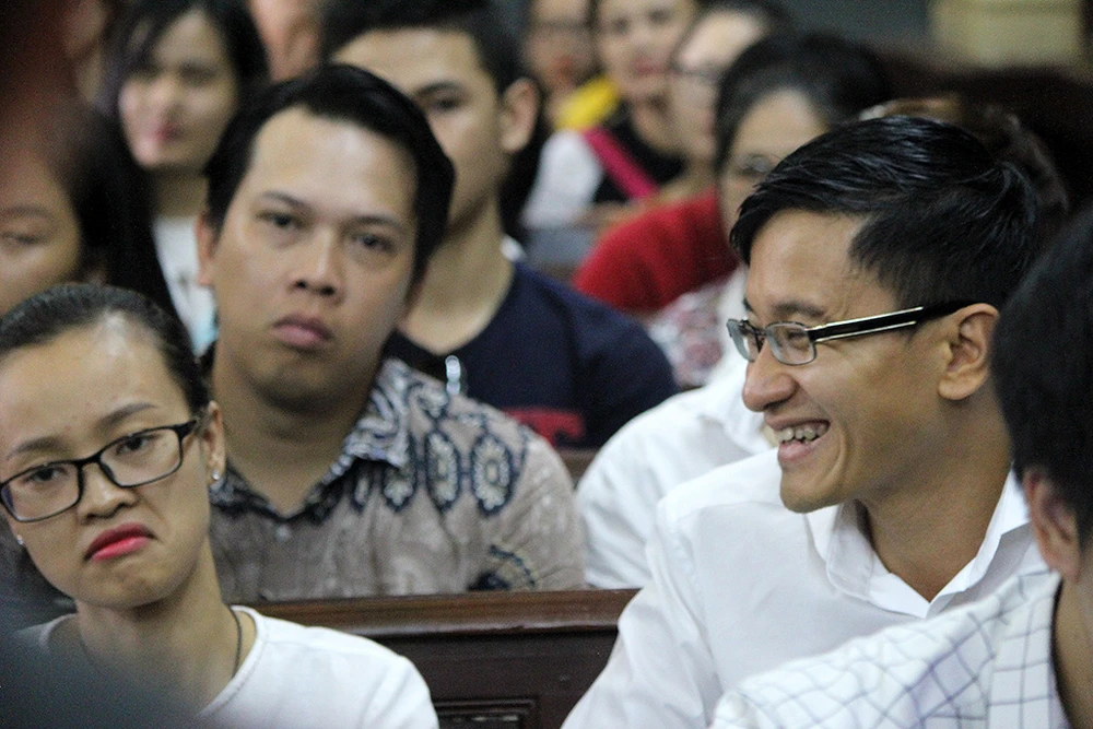 Nụ cười luôn trên môi hai cô gái khi vào phòng xử án.