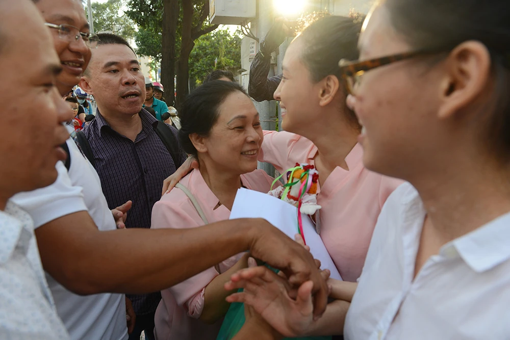 Mẹ của Phương Nga không giấu được sự sung sướng khi rời tòa.
