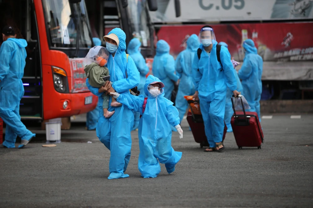 Người dân Phú Yên ở TP.HCM tiếp tục được đón về quê chiều 16-9 tại Bến xe Miền Đông.