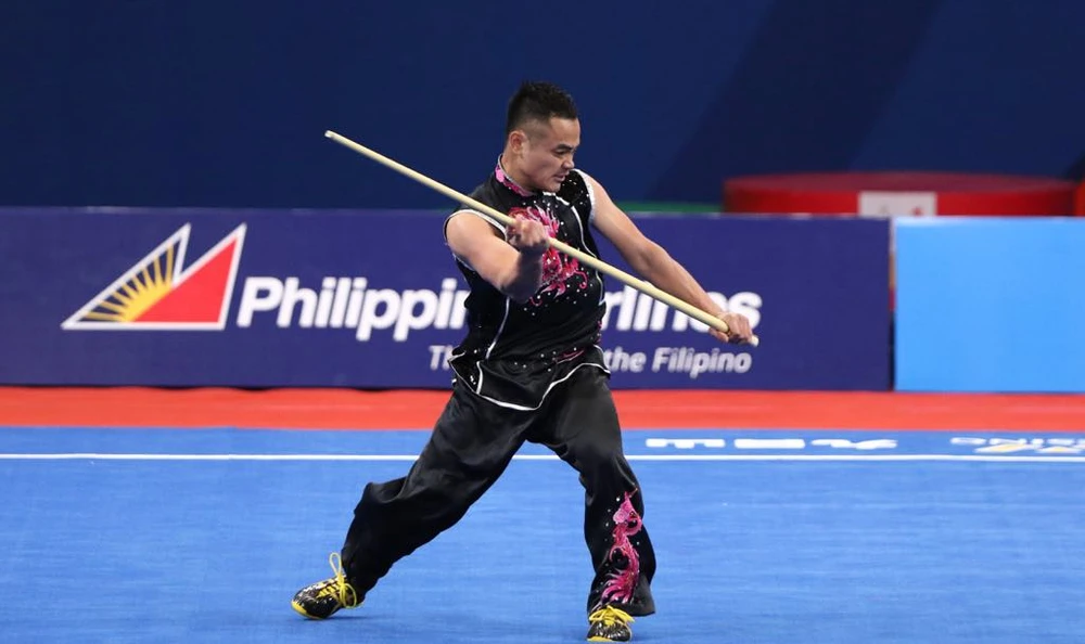 Võ sĩ wushu Phạm Quốc Khánh giành HCĐ nội dung taolu. Ảnh: ANH PHƯƠNG