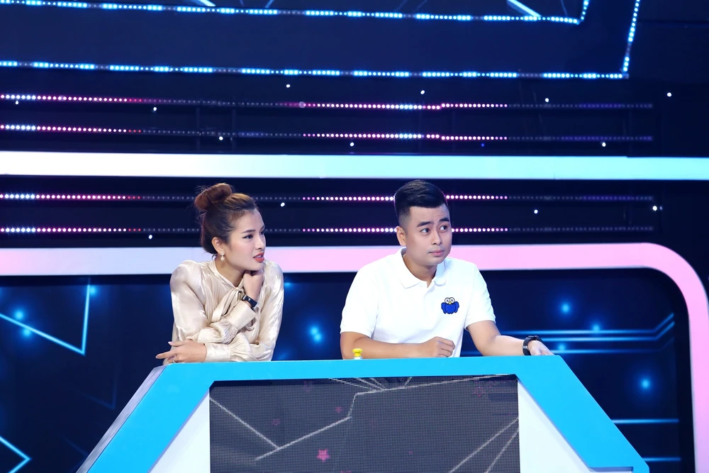 Minh Xù giới thiệu hai người chơi tiếp theo là Hồ Việt Trung, Lê Trang, cặp đôi “tiên đồng ngọc nữ” một năm chỉ gặp nhau một lần.