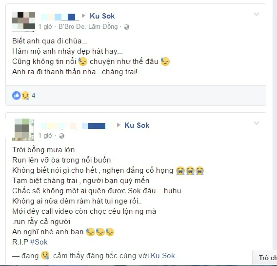 Bạn bè bày tỏ sự tiếc thương trước sự ra đi đột ngột của chàng trai trẻ