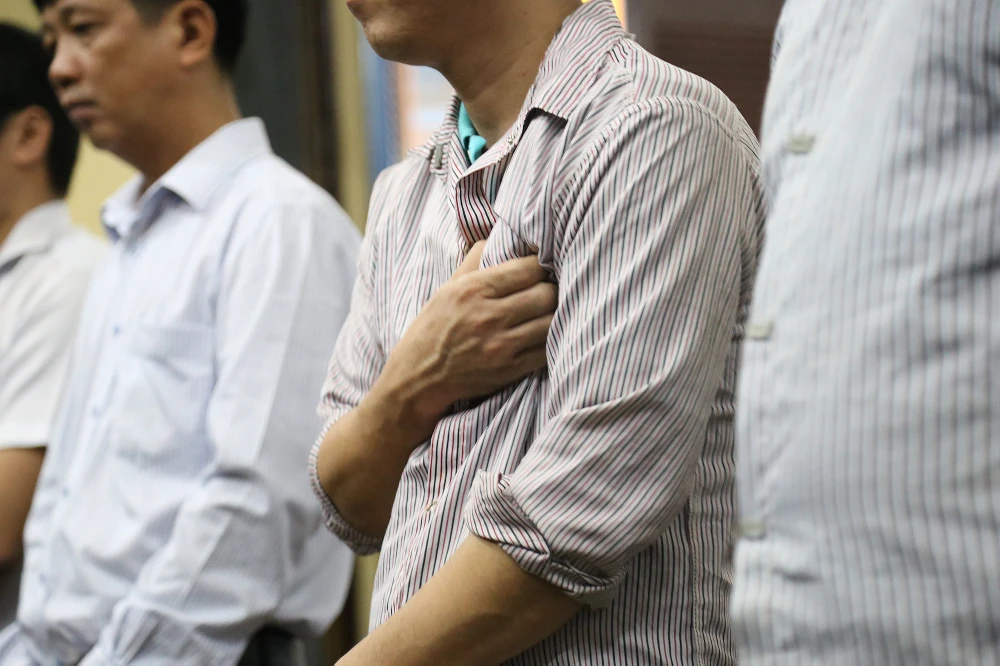 Các bị cáo lắng nghe HĐXX tuyên án.