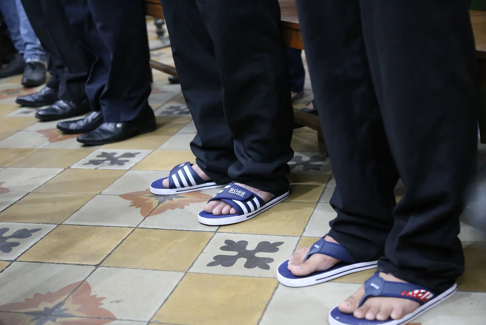 Bị cáo Hùng và Cường bị áp giải về trại giam sau khi tòa tuyên án.