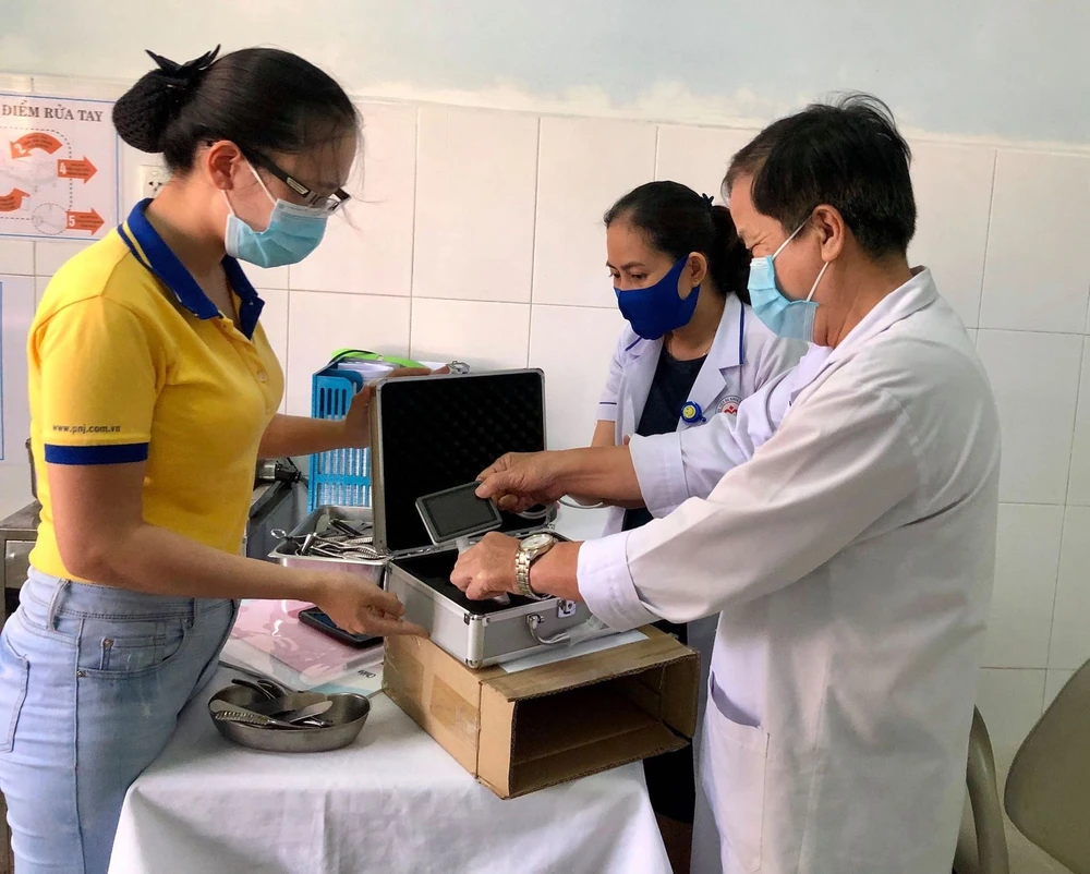 PNJ trao tặng bộ đặt nội khí quản có camera cho Bệnh viện đa khoa Quảng Nam. Ảnh: HA.