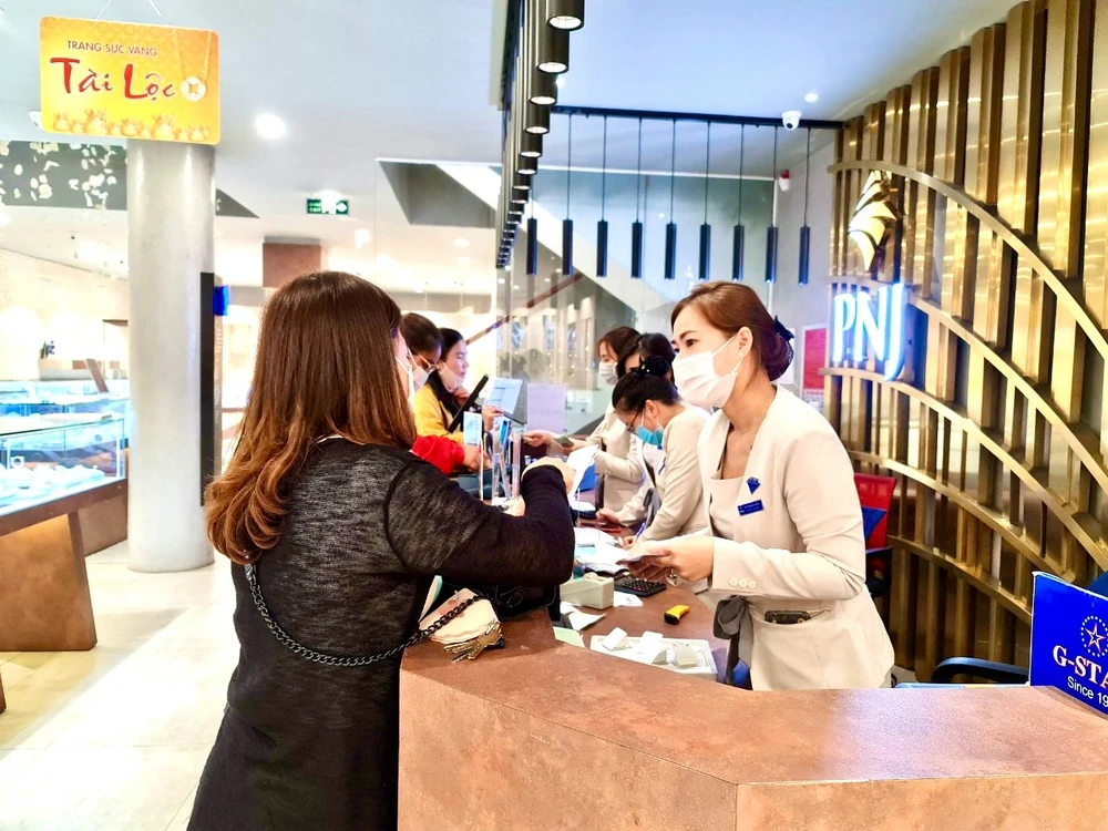 Nhân viên PNJ đang tư vấn cho khách hàng.