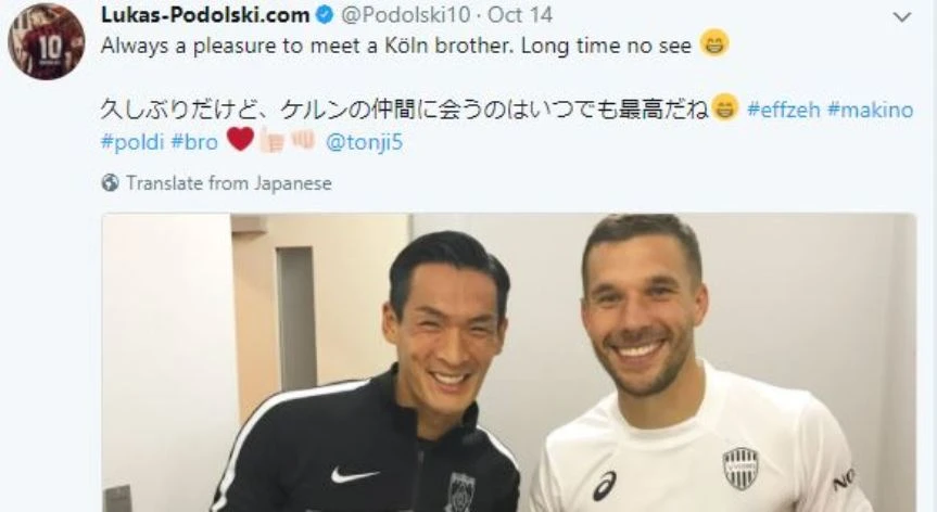 Makono là người bạn rất thân của Podolki, cả hai có nhiều kỷ niệm về tình bạn. Bây giờ Makino về khoác áo Urawa Red Diamond thì Podolski sẽ đến xem và cổ vũ người bạn Nhật.
