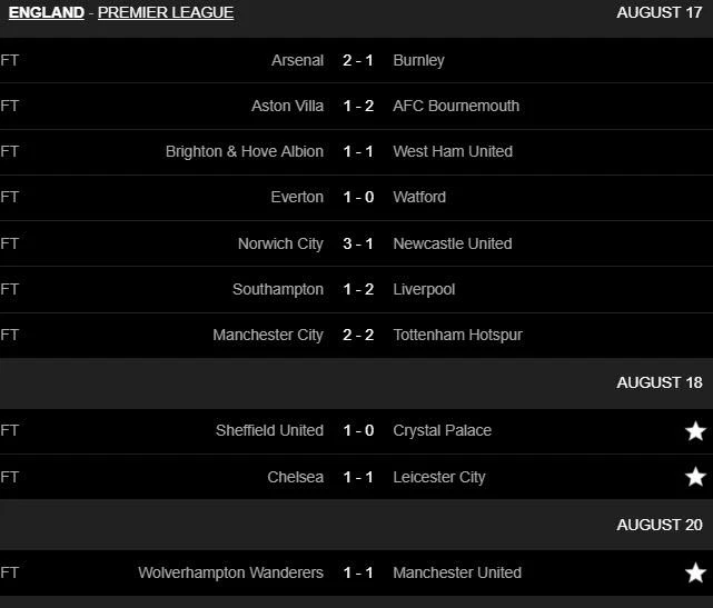 Phút 90+4, Luke Shaw lại dứt điểm cận thành quá nhẹ vứt luôn cơ hội cuối cùng của MU. Hòa 1-1, MU lỡ mất cơ hội lên ngôi đầu bảng. Sau hai vòng, MU có được 4 điểm, xếp thứ tư trên bảng xếp hạng Premier League.