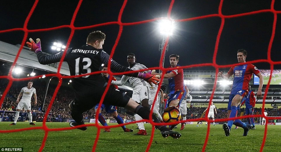 Phút 13, Paul Pogba cảnh báo đội chủ nhà bằng pha sút xa sở trường nhưng do khoảng cách khá xa nên bóng đi vọt xà ngang khung thành Crystal Palace.