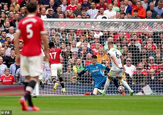 2 phút sau, tức phút 54, vẫn từ pha kiến tạo của Pogba, Bruno Fernandes có pha xử lý cực hay trong vòng cấm rồi dứt điểm vào lưới, hậu vệ Leeds dù phá bóng ra nhưng bóng đã nằm sau vạch vôi. 3-1 cho MU.