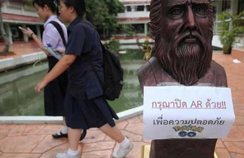 Một số trường đại học ở Thái Lan đã dán bảng yêu cầu sinh viên tắt chế độ thực tế ảo, không chơi Pokémon Go. Ảnh: Bangkok Post