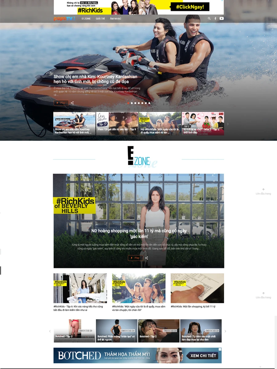 Trong sự kiện ra mắt trang video giải trí POPS TV mới đây, đại diện đơn vị chủ quản - POPS Worldwide, bà Esther Nguyễn cho biết hàng loạt các chương trình truyền hàng đầu thế giới thuộc thương hiệu E!Zone của NBCUniversal như: Keeping up with the Kardashians, #RichKids of Beverly Hills, Citizen Rose, Botched, 2PM Wild Beat,… đã được Việt hóa và phát hành độc quyền trên trang video giải trí POPS TV.