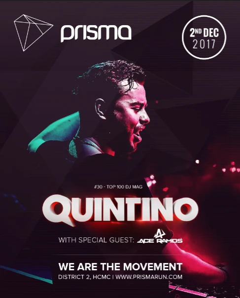 Ngoài ra, Prisma 2017 còn được khuấy động bởi hai ngôi sao tài năng của làng DJ thế giới. Quintino, hiện ở vị trí 30 trong bảng xếp hạng DJ MAG. Anh chàng DJ Producer người Hà Lan đang sở hữu loạt hit "khủng" và lượng fan hâm mộ trên toàn cầu. Với phong cách đa dạng, Quintino sẽ là nhân tố khuấy đảo đêm hội Prisma.