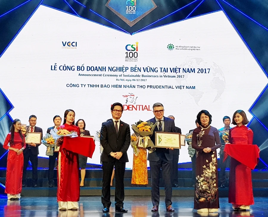 Cạnh đó, công ty vừa nhận giải thưởng: “Top 10 doanh nghiệp bền vững Việt Nam 2017” (ảnh) của Hội đồng Doanh nghiệp vì sự Phát triển bền vững (VBCSD) và giải thưởng “Top doanh nghiệp bảo hiểm đóng thuế nhiều nhất tại Việt Nam” của Tổng cục thuế.