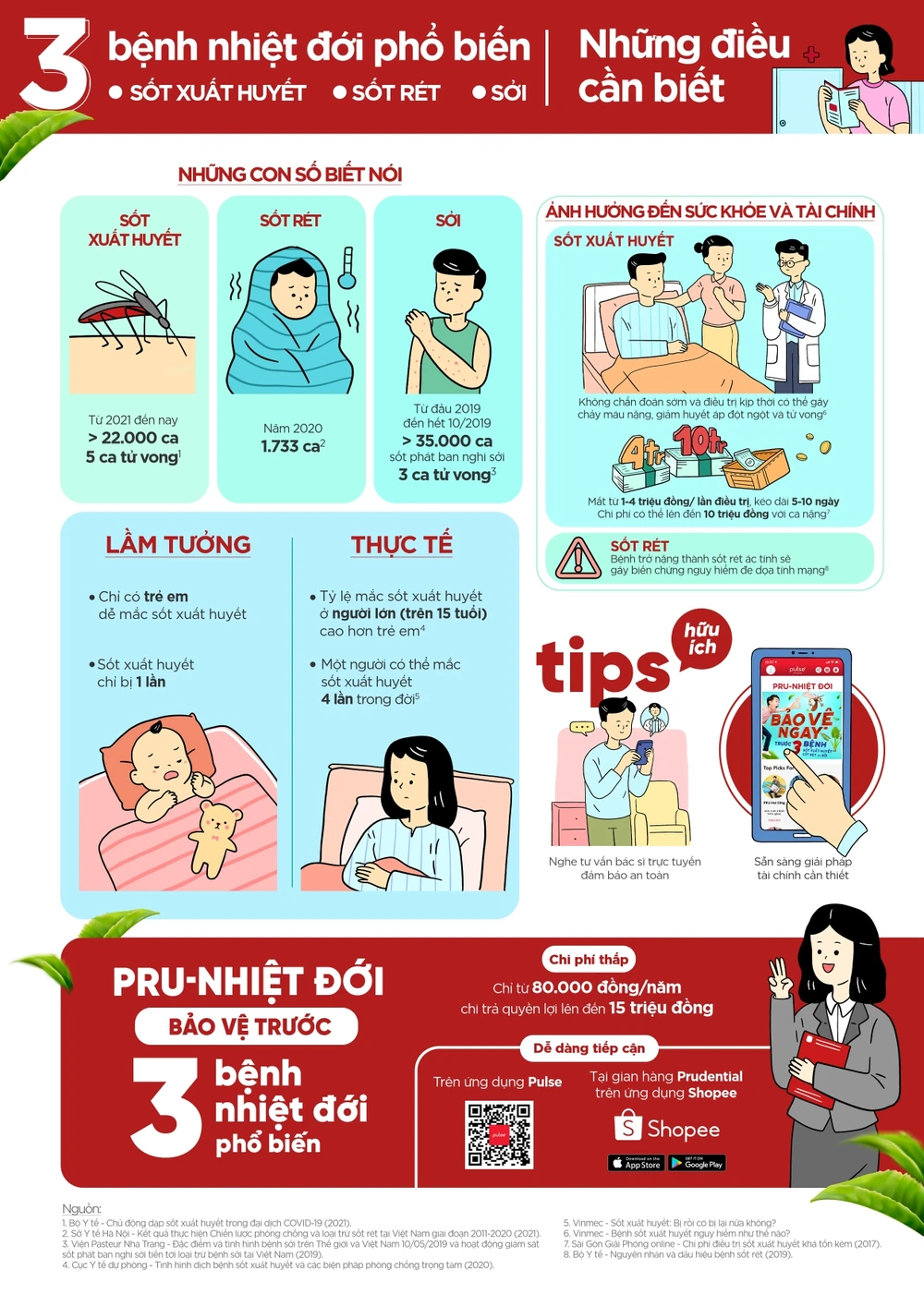 Ngày 6-9, Công ty TNHH Bảo hiểm Nhân thọ Prudential Việt Nam (Prudential) chính thức ra mắt “PRU-Nhiệt Đới”- sản phẩm bảo hiểm trực tuyến đầu tiên trên thị trường dành riêng cho 3 bệnh nhiệt đới phổ biến gồm sốt xuất huyết, sốt rét và sởi. Khách hàng có thể mua sản phẩm này với mức chi phí thấp và nhanh chóng trên ứng dụng Pulse by Prudential và sàn thương mại điện tử Shopee.