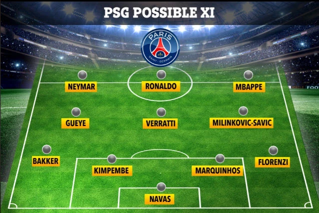 Đội hình của PSG nếu có Ronaldo. ẢNH: THE SUN