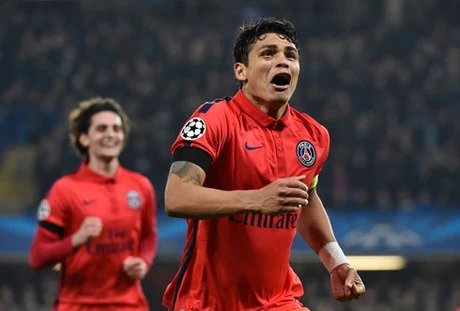 Niềm vui vỡ oà của Thiago Silva sau khi chính mình ghi bàn thắng quyết định, hạ gục Chelsea.