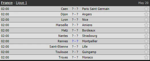 Ở vòng đấu cuối cùng, Lyon và Marseille lần lượt gặp Nice và Amiens trên sân nhà, trong khi AS Monaco phải đá trên sân khách gặp Troyes.