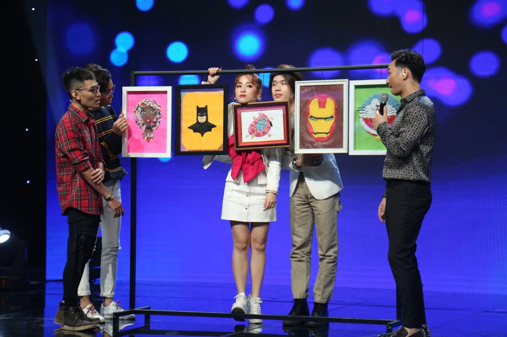Trong phần giao lưu cùng Quý Thành, anh chàng đã không ngần ngại giới thiệu những sản phẩm tranh bằng nút áo do chính bản thân dày công thực hiện.