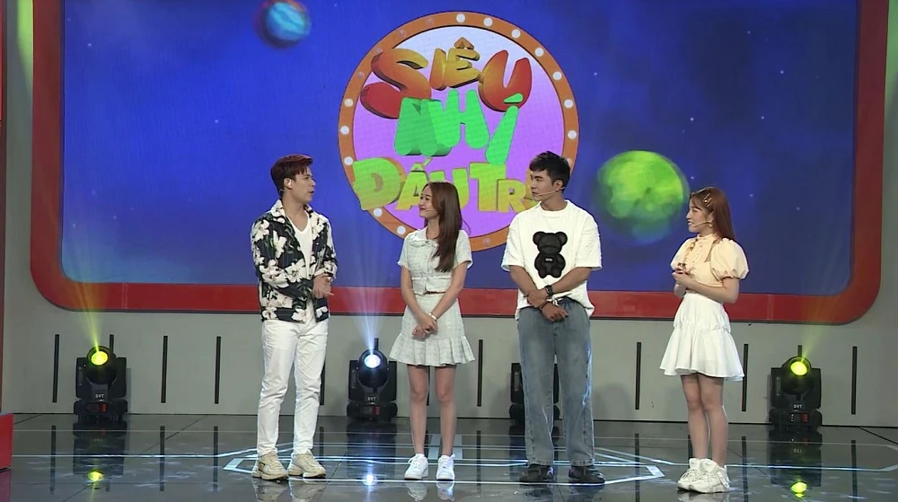 Trần Anh Huy, Nhung Gumiho, Steven Nguyễn, Puka tại Siêu nhí đấu trí. Ảnh: CTCC