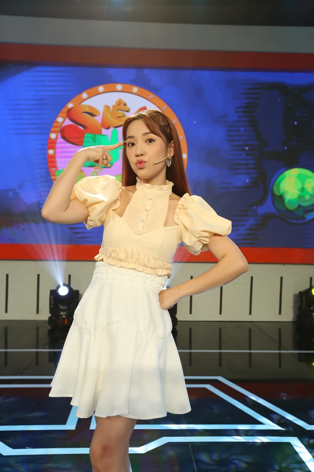 Nữ MC hào hứng nói: “Em vẽ cũng đẹp, viết chữ cũng đẹp, thắt vòng tay cũng đẹp, làm băng đô cài tóc được luôn”.