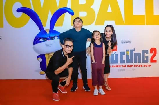 Gia đình ca sỹ Hoàng Bách tạo dáng nhí nhảnh tại buôi công chiếu bộ phim. Nam ca sỹ chia sẻ anh rất đón chờ sự trở lại của biệt đội thú cưng vì anh luôn băn khoăn ở phần hai này không biết bọn thú cưng sẽ tiếp tục bày trò nghịch ngợm gì trong khi chủ đi vắng.