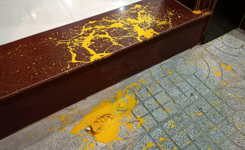 Không chỉ ném chất bẩn, những người lạ mặt còn ném cả sơn vào nhà 'khủng bố' gia đình ông Tuấn. Ảnh: T.TH