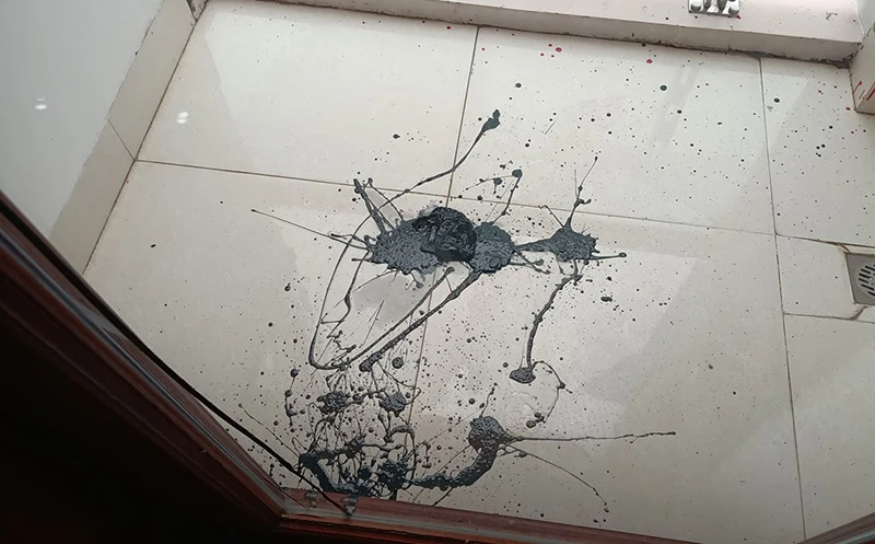 Chất bẩn gồm dầu luyn, mắm tôm bị ném vào nhà riêng gia đình ông Tuấn. Ảnh: T.TH