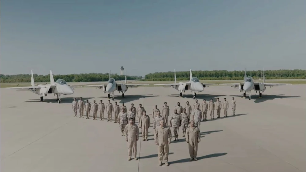 Lô tiêm kích F-15QA đầu tiên mà Qatar nhận hồi tháng 8. Ảnh TWITTER