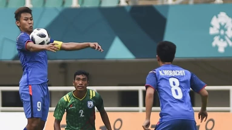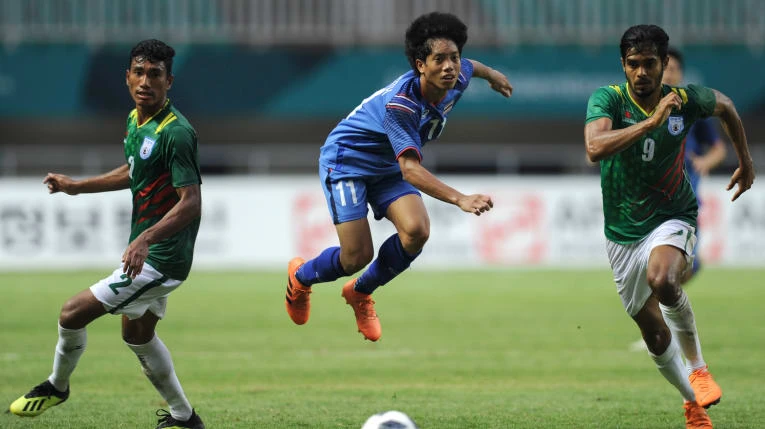 Thái Lan (xanh) bất ngờ gặp sự kháng cự mạnh từ Bangladesh.
