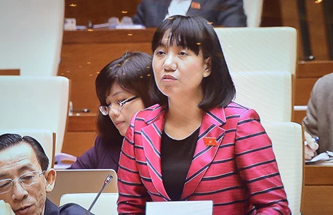 ĐBQH Đoàn Nguyễn Thùy Trang nêu ý kiến về dự thảo Luật Báo chí sửa đổi tại hội trường Quốc hội ngày 26-11. Ảnh: NN
