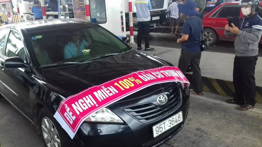 Tài xế cho biết nhà ở cách trạm khoảng 100m, chỉ đi qua rước người thân thôi phải tốn 40.000 đồng nên yêu cầu chủ đầu tư BOT giảm 100% phí cho nhưng người dân khu vực phường Ba Láng và Tân Phú Thạnh.